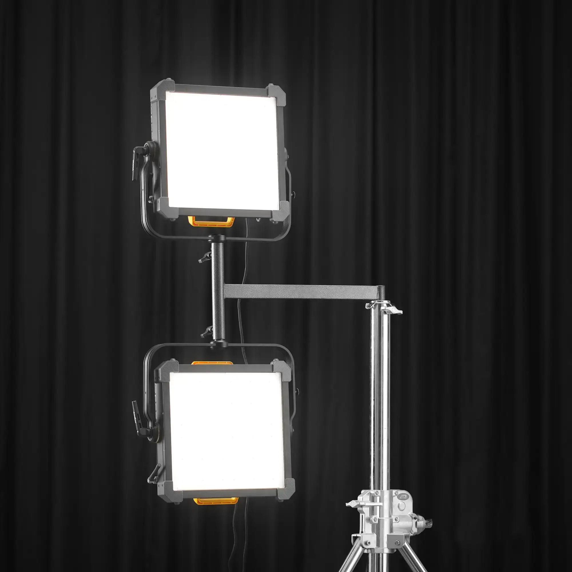 Кронштейн Godox HJ02 создает две точки крепления для светодиодных панелей Godox Knowled P600BI с адаптером Junior на стандартной студийной стойке, такой как Godox SA5015 или Godox SA5045, с посадочным местом под адаптер Junior.