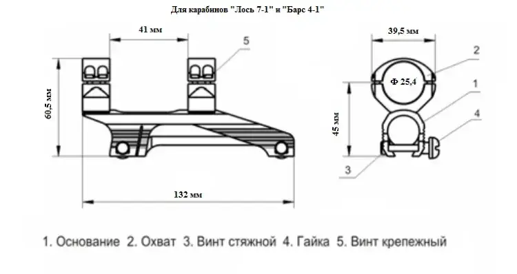 | Крепление на оружие | «Ласточкин хвост» – карабин «Лось 7-1», «Барс 4-1» |