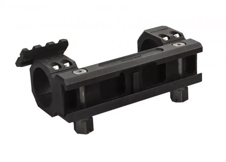 - Цельнолитая заготовка из закаленного алюминия марки В95. Для защиты от пережатия и прецизионной установки на ружье.