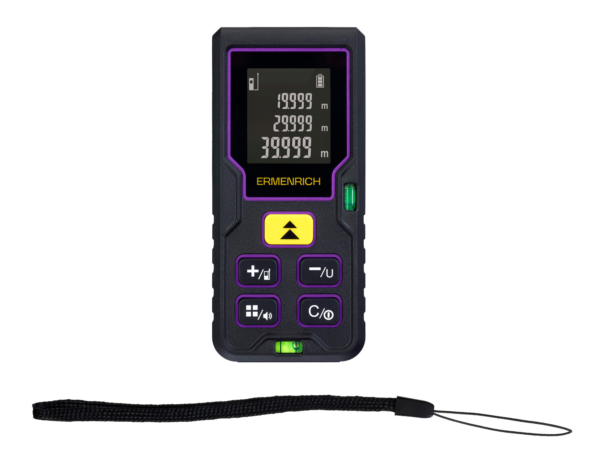 Ermenrich Reel PLUS GD100 – лазерная рулетка, разработанная для решения широкого спектра задач в проектировании, строительстве, ремонтных работах, кадастровом и маркшейдерском деле, промышленном производстве. Рулетка подходит для измерения длины любых частей строений и деталей, а также площадей и объемов помещений. При невозможности поместить устройство в начальную точку измеряемой линии встроенная функция «Пифагор» позволяет провести замер на основе косвенных измерений.