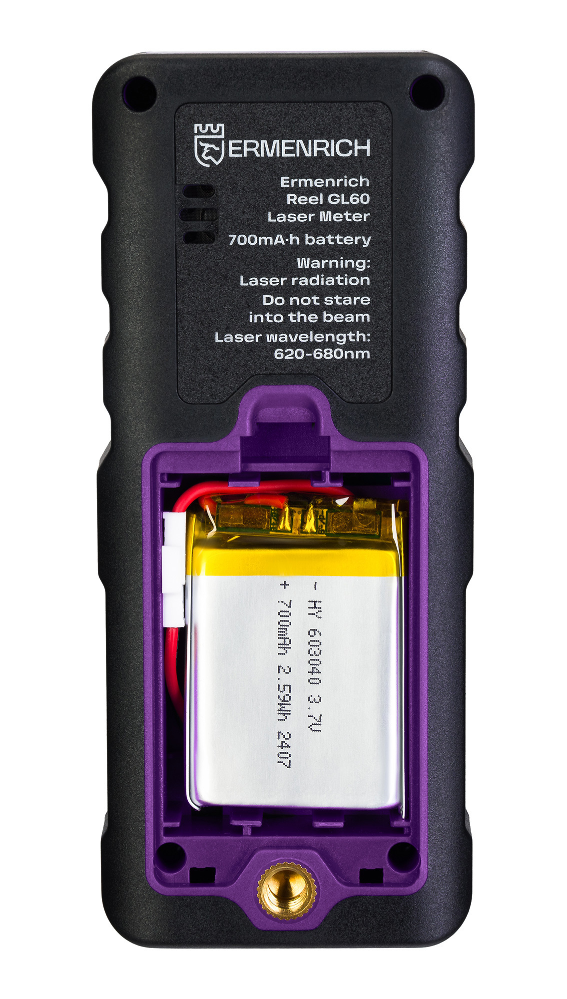 В приборе предусмотрено множество функций, которые будут полезны и профессионалам, и любителям. Функция «Пифагор» поможет косвенно измерить расстояние между двумя точками по двум промежуточным замерам. Для экономии времени при расчетах предусмотрена возможность сложения/вычитания от готового результата измерений. Если нет времени часто смотреть на экран во время активной работы, можно активировать функцию озвучки значений на экране прибора. Лазерная рулетка Ermenrich Reel PRO GL60 имеет встроенную память, объема которой достаточно для хранения большого количества результатов измерений – до 100 групп.