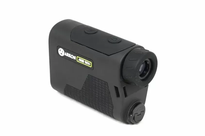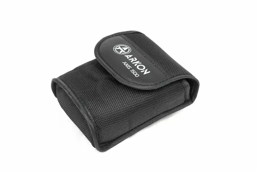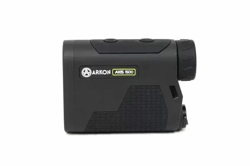 Дальномер Arkon AXIS 1500 выполнен в классическом формфакторе, удобно лежит в руке, имеет эргономичное расположение органов управления. Окуляр оснащен поворотным механизмом диоптрийной корректировки, позволяющим идеально настраивать изображение на индивидуальные особенности зрения. Прорезиненное покрытие корпуса приятно на ощупь, а также эффективно препятствует выскальзыванию прибора из мокрых рук. Влагозащитное исполнение позволяет эксплуатировать дальномер в условии высокой влажности.