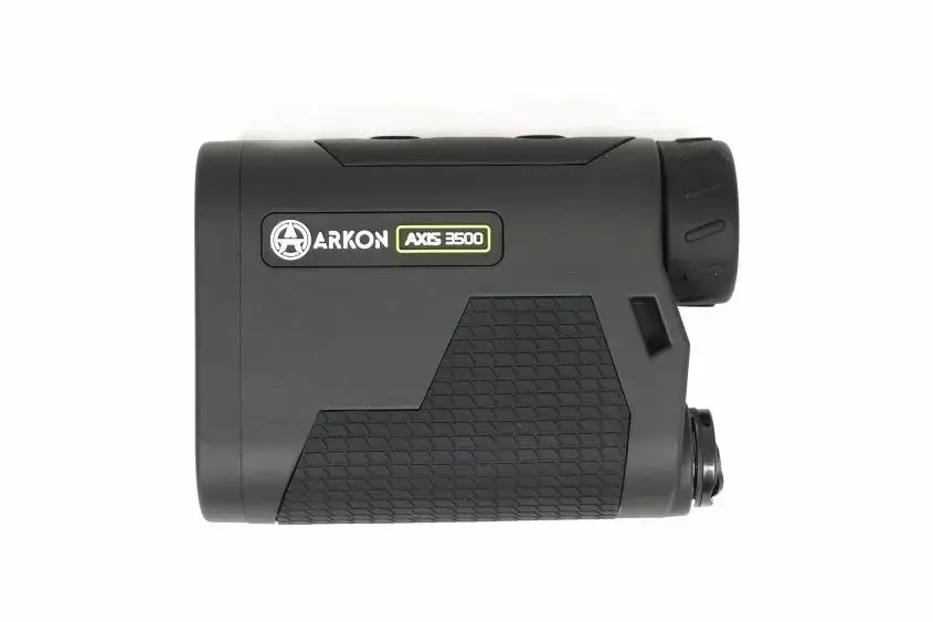 Дальномер Arkon AXIS 3500 выполнен в классическом формфакторе, удобно лежит в руке, имеет эргономичное расположение органов управления. Окуляр оснащен поворотным механизмом диоптрийной корректировки, позволяющим идеально настраивать изображение на индивидуальные особенности зрения. Прорезиненное покрытие корпуса приятно на ощупь, а также эффективно препятствует выскальзыванию прибора из мокрых рук. Влагозащитное исполнение позволяет эксплуатировать дальномер в условии высокой влажности.