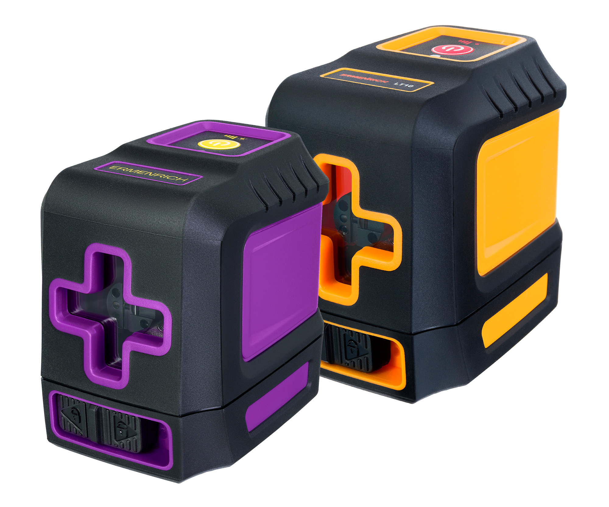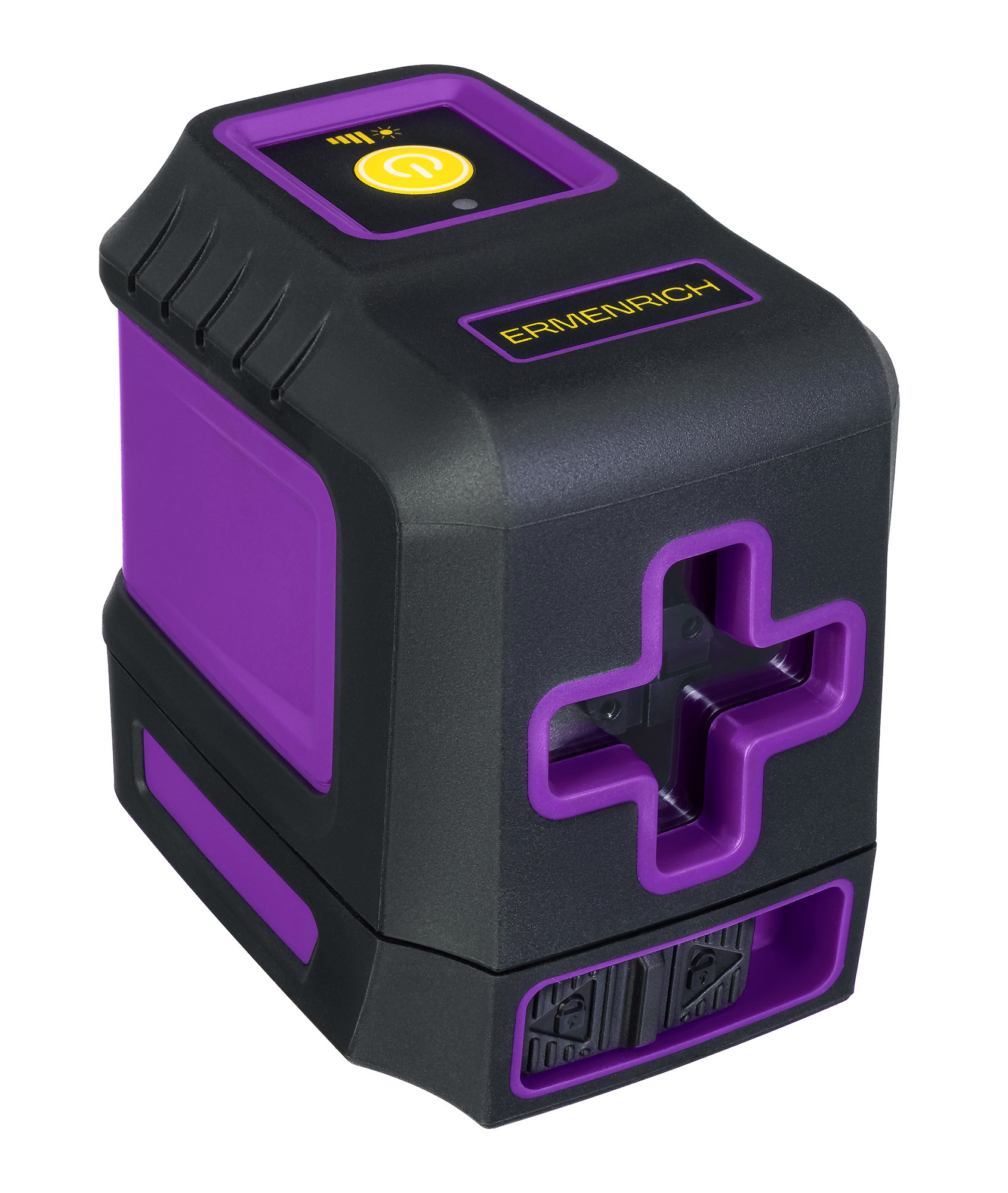 Модель Ermenrich BASE LT10 работает от пары батареек, срок автономной работы на одном заряде достигает 62 часов (при выборе низкой яркости лазерных светодиодов). Всего доступно 4 степени интенсивности лучей. Прочный корпус уровня защищен от пыли и брызг воды. Есть здесь и защита от падений, благодаря чему прибор устойчиво располагается на любой поверхности. При необходимости его можно также установить на штатив со стандартным диаметром 1/4 дюйма. Используя штатив с поворотной головкой, можно перемещать уровень, получая необходимую конфигурацию плоскостей.