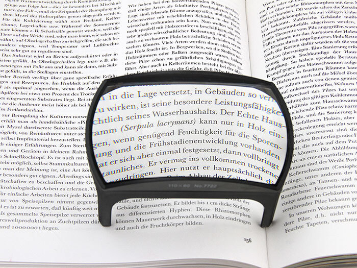 Лупа Veber 7722 предназначена специально для чтения текста под увеличением. Линза имеет увеличение 3х, длина линзы 110 мм, ширина 60 мм. Очень удобна в использовании, достаточно ее положить на текст и постепенно передвигать.