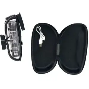 Сменные линзы помогут рассмотреть объекты на разной кратности – диапазон увеличения составляет от 1,5x до 4,5x. Три насадки из оптического пластика можно закреплять попарно. Сбоку от линз находится подсветка из двух ярких светодиодов. Освещение работает от встроенного аккумулятора (USB-кабель для зарядки включен в комплект) и позволяет изучать объекты даже в темное время суток.