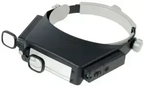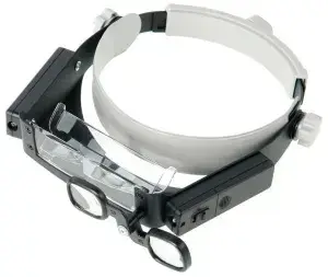 - Регулируемый обруч-фиксатор для головы, плотно держащий лупу на месте