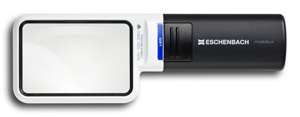 Асферическая лупа на ручке с подсветкой Eschenbach Mobilux LED 3,5x, 75x50 мм – универсальный оптический инструмент для решения повседневных задач. С ее помощью удобно читать мелкий шрифт на этикетке или чеке, рассматривать карты, фотографии, книжные иллюстрации. Лупа поможет скорректировать особенности зрения: ее можно применять вместе с корригирующими очками. Пригодится этот оптический прибор и коллекционерам – он поможет рассмотреть детали марки, мелкие элементы монеты, выявить небольшие дефекты поверхности.