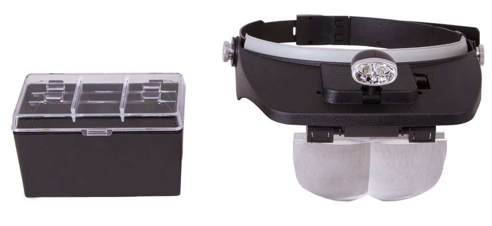 Лупа Levenhuk Zeno Vizor H3 – налобная лупа со сменными линзами. Лупа подойдет для любых работ, требующих высокой точности. Она надежно крепится на голове при помощи обруча и позволяет выбирать одно из четырех увеличений в диапазоне от 1,2х до 3,5х. Можно комбинировать линзы, устанавливая на лупу до двух линз одновременно. Такую лупу можно применять при работе с электронными платами, ювелирными изделиями, небольшими механизмами и мелкими шрифтами.