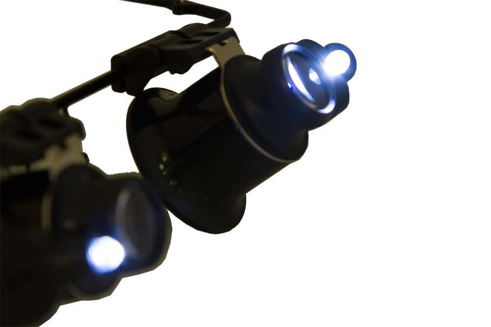 Лупа Levenhuk Zeno Vizor G2 – это лупа на очковой оправе с линзами для обоих глаз. Каждая линза имеет 20-кратное увеличение. Линзы можно перемещать по горизонтали или убирать в сторону. С помощью светодиодной подсветки удобно освещать рабочую область – при недостаточном внешнем освещении эта функция будет особенно полезна. Батарейки для работы подсветки уже включены в комплект.