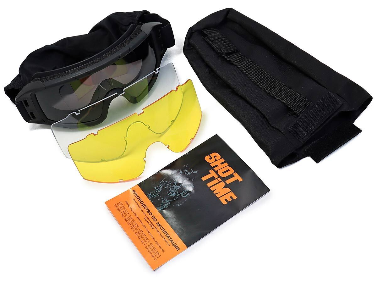 Маска стрелковая защитная ShotTime Puma, оправа чёрная, 3 линзы: прозрачная, желтая, серая