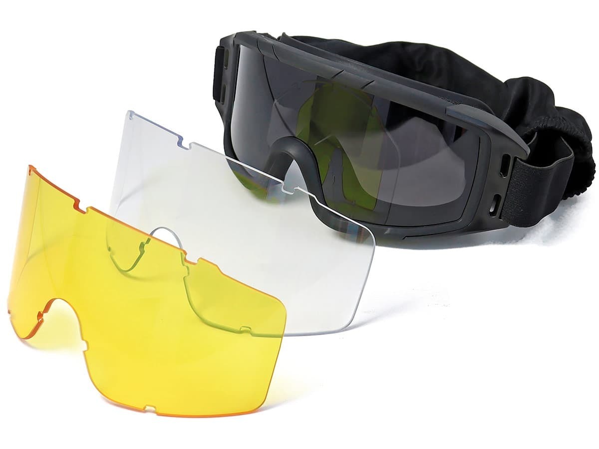 Внутренние поверхности линз имеют покрытие, защищающее от запотевания. Вы можете сочетать 3 сменные линзы между собой в зависимости от внешних условий. Серая линза обеспечивает хорошую цветопередачу и отлично защищает глаза от яркого солнечного света. Жёлтая линза улучшает контраст видимого изображения. В ней яркий свет становится более тусклым, а при недостаточном освещении «картинка» становится более контрастной. Прозрачная линза подходит для работы в условиях нормального освещения. Очки с такой линзой не искажают зрительное восприятие и не утомляют глаза.
