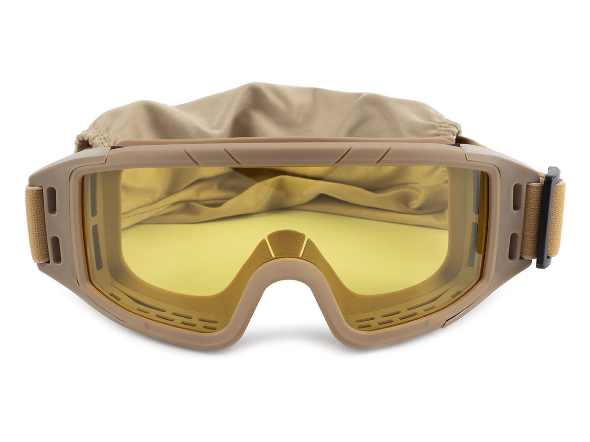Внутренние поверхности линз имеют покрытие, защищающее от запотевания. Жёлтая линза улучшает контраст видимого изображения. В ней яркий свет становится более тусклым, а при недостаточном освещении «картинка» становится более контрастной.