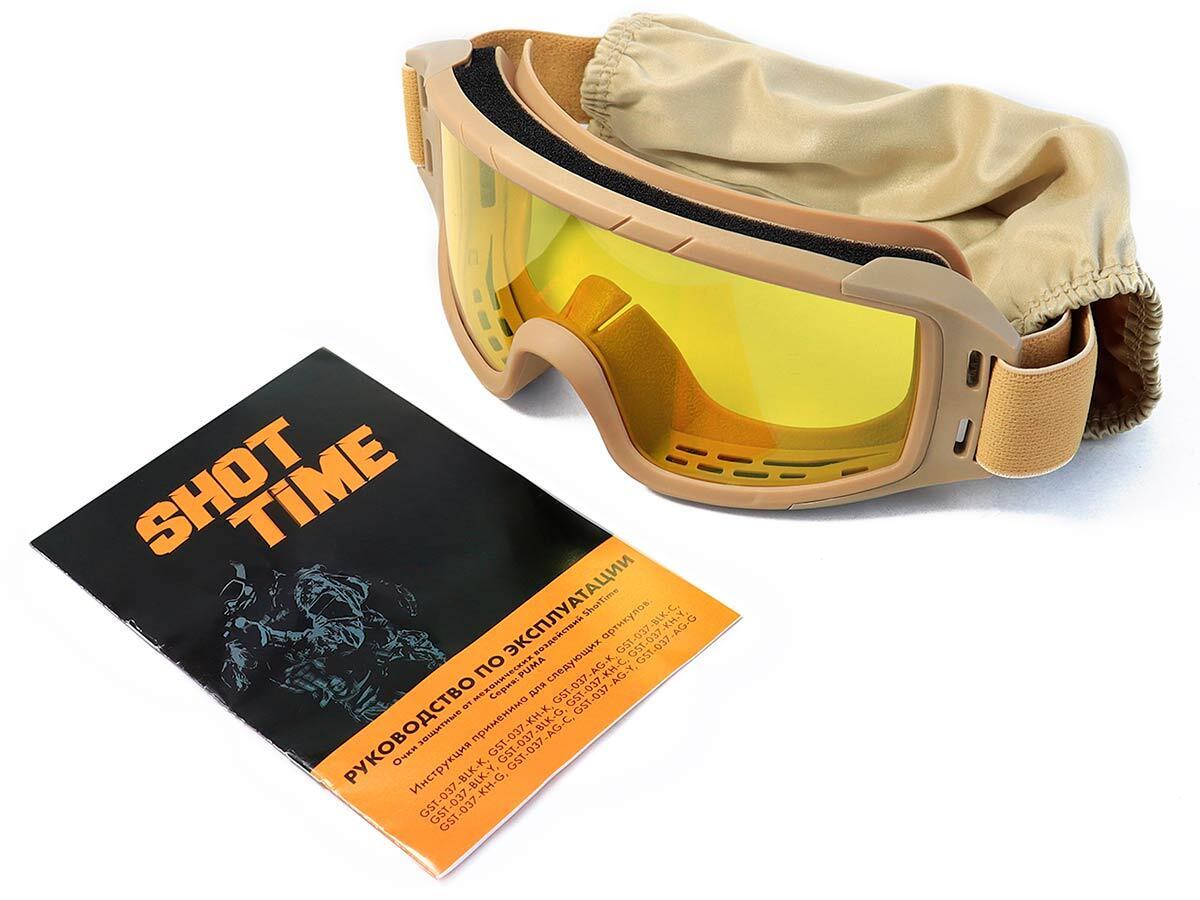 Маска стрелковая защитная ShotTime Puma, оправа хаки, линза жёлтая