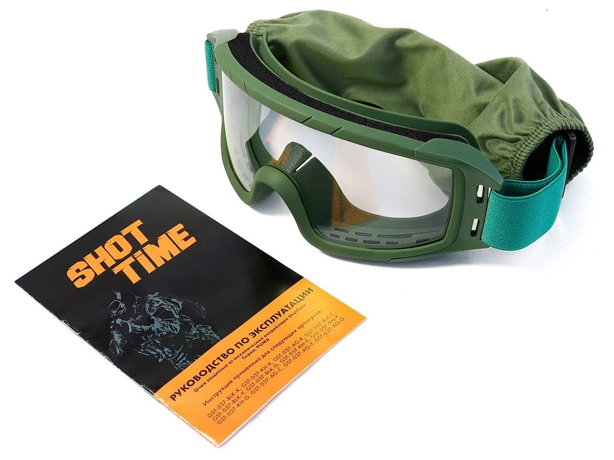 Маска стрелковая защитная ShotTime Puma, оправа зелёная, линза прозрачная