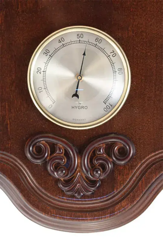 - Биметаллический гигрометр измеряет важный экологический показать окружающей среды - относительную влажность воздуха. Данные отображается на соответствующей шкале с диапазоном от 0 до 100 %.