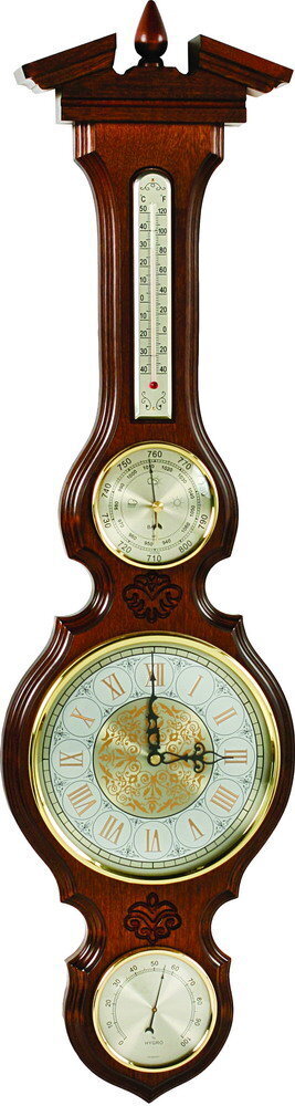 Метеостанция М-97 – отличный подарок для тех, у кого есть вкус. Прекрасно оформленная вещь, корпус выполнен из дерева дорогих лиственных пород, покрыт несколькими слоями лака и оформлен в стиле эпохи Возрождения. Встроены большие кварцевые часы. Производитель - российская компания «Бриг +», которая уже более 12-ти лет специализируется на изготовлении сувенирной продукции и стала номинантом конкурса «100 лучших товаров России».