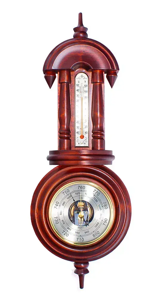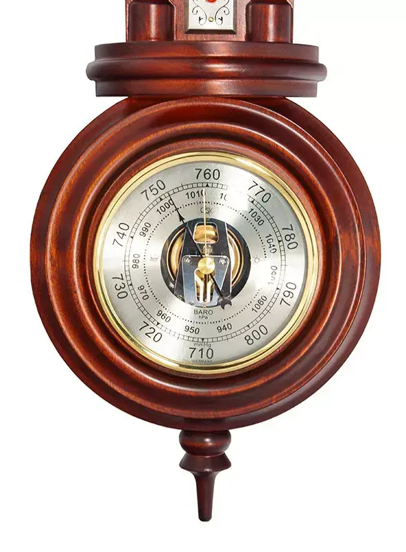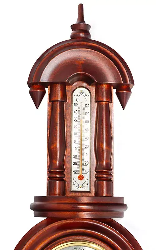 Комнатная метеостанция М1, барометр предназначена для измерения атмосферного давления и температуры воздуха в помещении. Высокоточные приборы оснащены большими циферблатами, удобны для пользования людям со слабым зрением. Показания величины атмосферного давления доступны в миллиметрах ртутного столба в пределах 730…790 мм.рт.ст. или в гектопаскалях – 940…1060 гПа. Дополнительно нанесены небольшие пиктограммы с изображениями погоды, соответствующей определенному диапазону давления. Прибор рекомендован людям с высокой метеозависимостью, у которых самочувствие сильно зависит от изменений погоды. С домашней метеостанцией М1 вам будет легче планировать будущий день, прогулки или поездки за город.