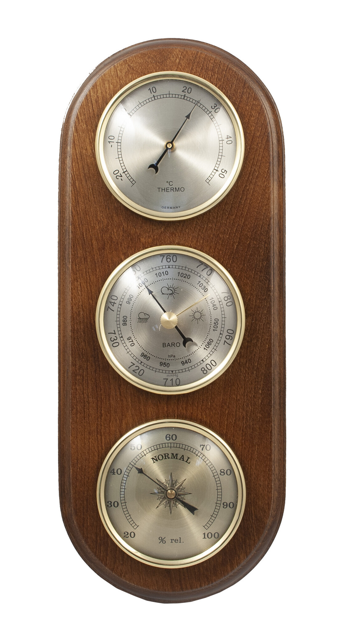 Биметаллический термометр с высокой точностью измеряет температуру в пределах от -25 до +55 °C как внутри отапливаемой комнаты, так и в неотапливаемом помещении, а стрелочный гигрометр показывает относительную влажность воздуха (в процентах, от 0 до 100) в том же помещении. Эти приборы позволяют контролировать микроклимат в доме: вовремя проветрить / охладить помещение, включить обогреватель или начать топить печку.
