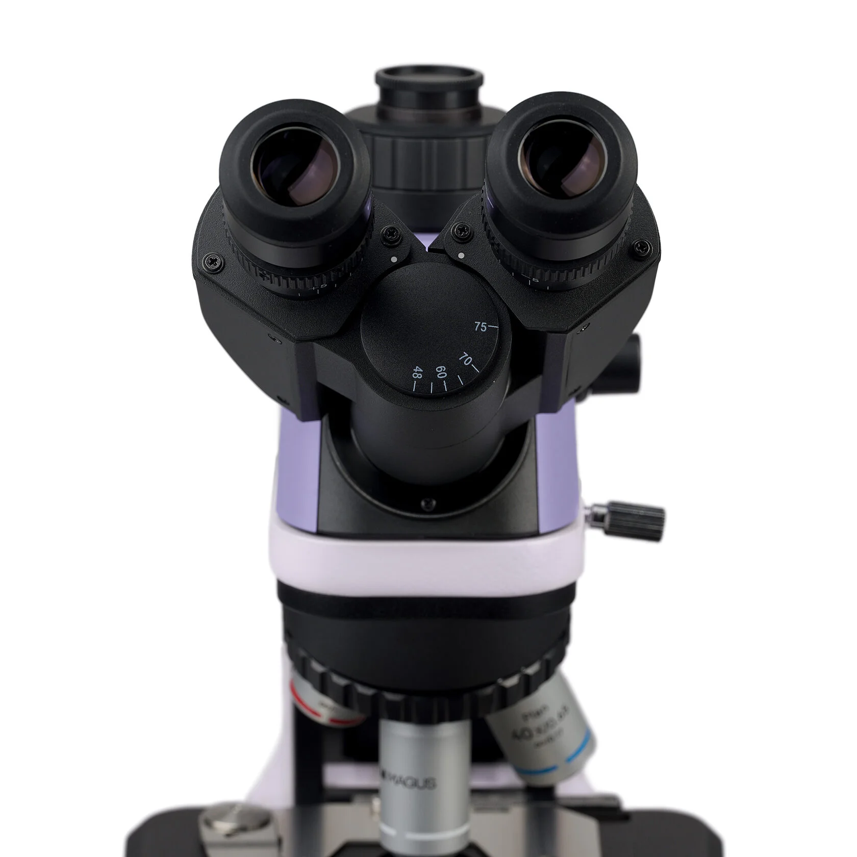 Визуальная насадка с поворачивающимися на 360° тубусами предназначена для установки двух окуляров и цифровой камеры. Световой поток делится 100/0 или 0/100. В наборе с микроскопом поставляются два окуляра 10x/20 мм. Оптика рассчитана на бесконечность. Для удобства работы в очках окуляры комплектуются плоскими наглазниками. Они защищают оптику от царапин и повреждений, которые могут появиться при случайном столкновении. Пользователи с близорукостью и дальнозоркостью могут откорректировать резкость изображения на тубусах.