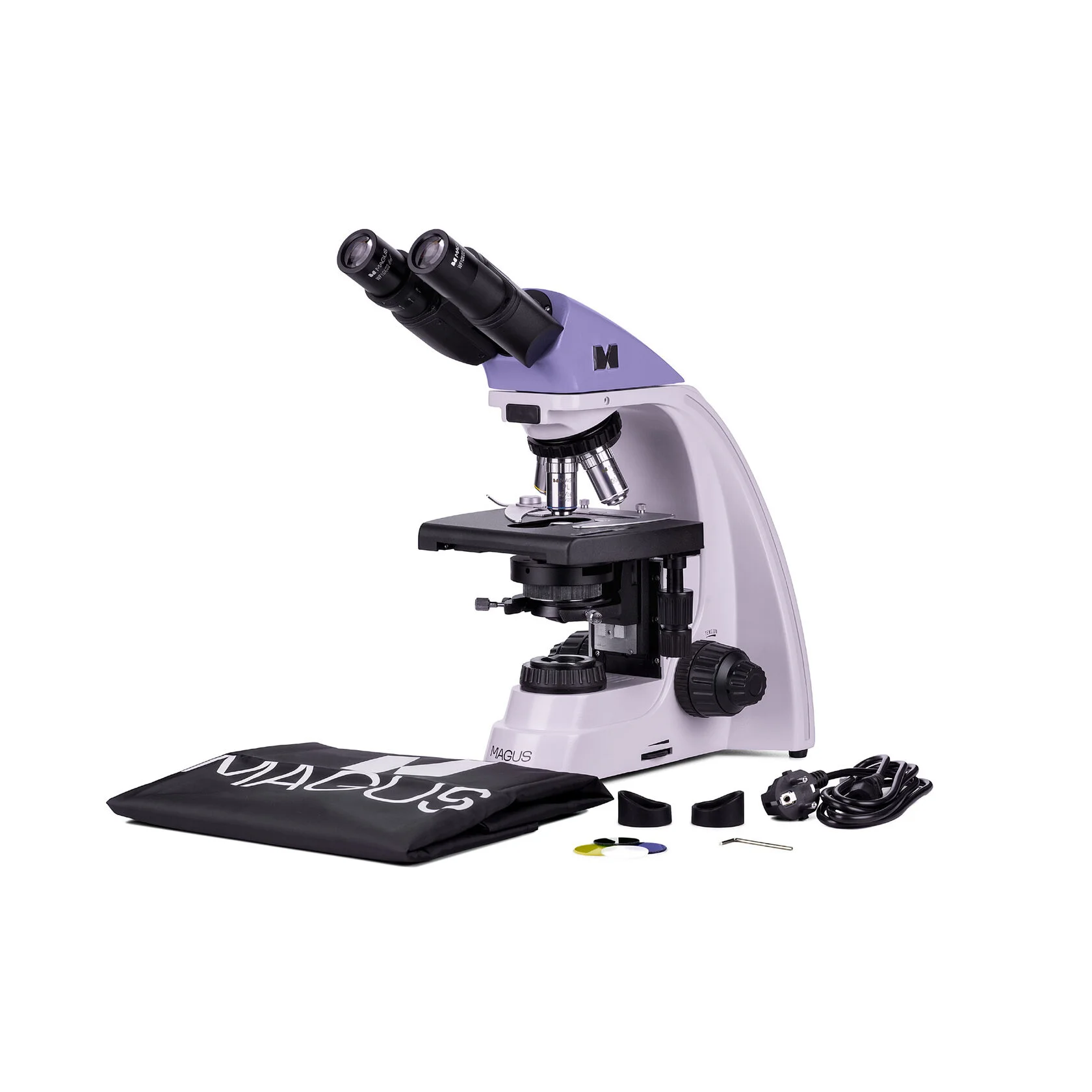MAGUS Bio 250B – биологический микроскоп для работы с полупрозрачными и прозрачными образцами. Оснащен бинокулярной насадкой, планахроматической оптикой и 30-ваттным галогенным осветителем проходящего света. Используется для ведения наблюдений в светлом поле, а при оснащении дополнительными аксессуарами – в темном поле, в поляризованном свете и с использованием фазово-контрастного метода. Микроскоп подходит для решения широкого круга задач в лаборатории, научно-исследовательском центре, на кафедре вуза.