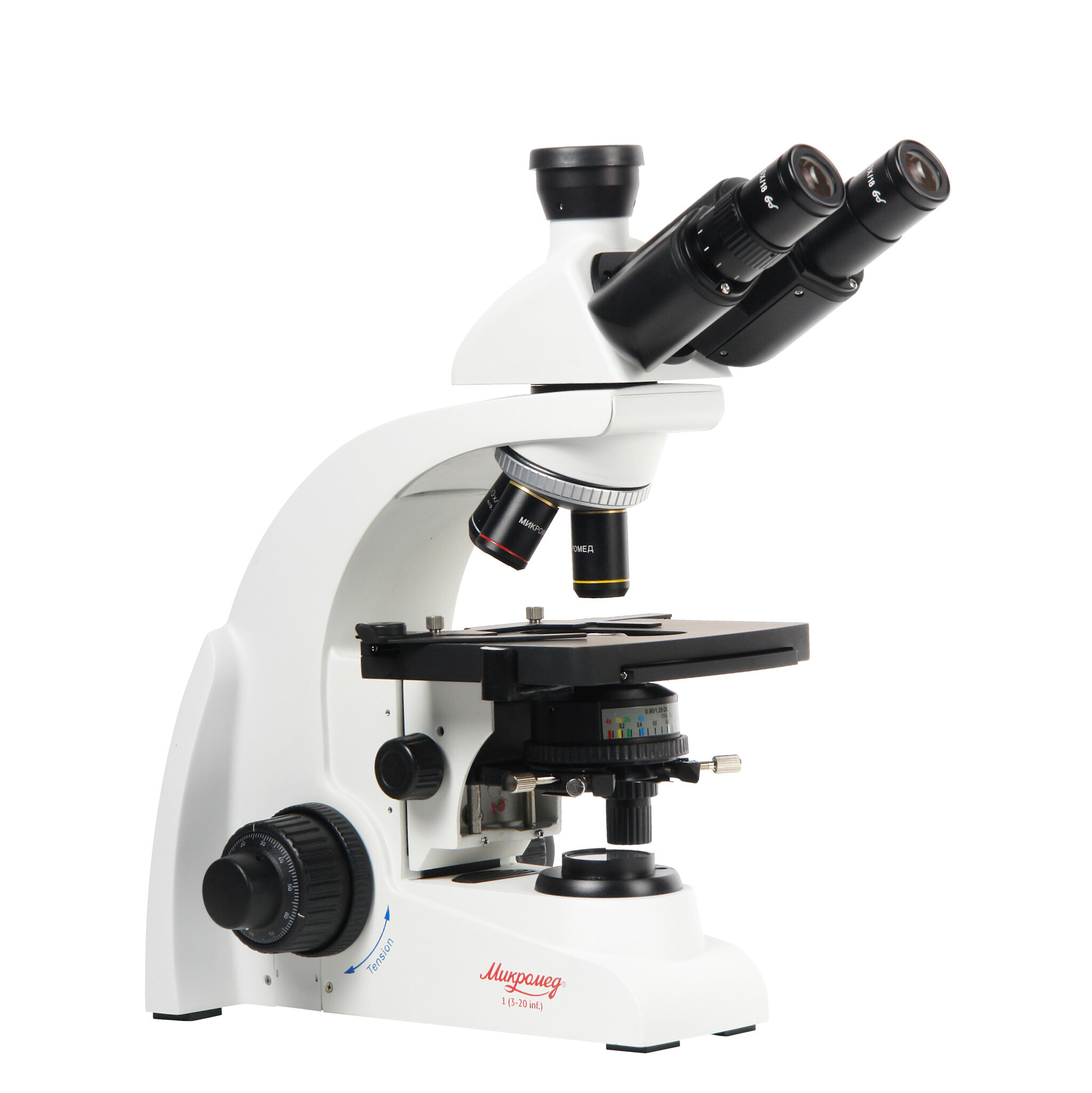 Микроскоп Микромед 1 (3-20 inf.) спроектирован на оптическую длину тубуса «бесконечность». Оптическая система микроскопа включает в себя оптическую головку с окулярными тубусами и каналом визуализации, объективы на револьверном устройстве, коллектор и конденсор осветительного устройства со слотом для устройства темного поля. Все оптические детали микроскопа изготовлены из оптических стекол высокого класса и имеют многослойное просветляющее покрытие поверхностей.