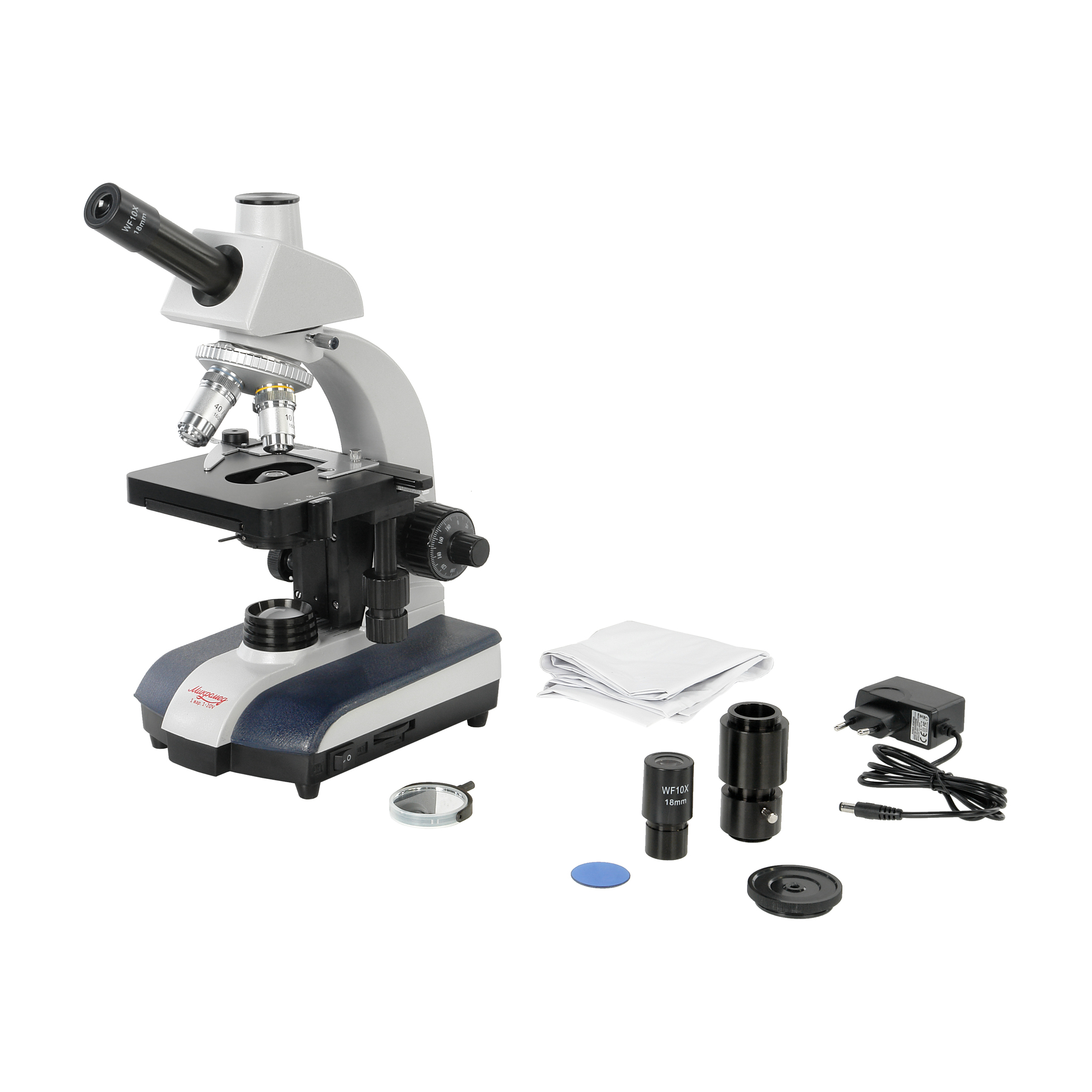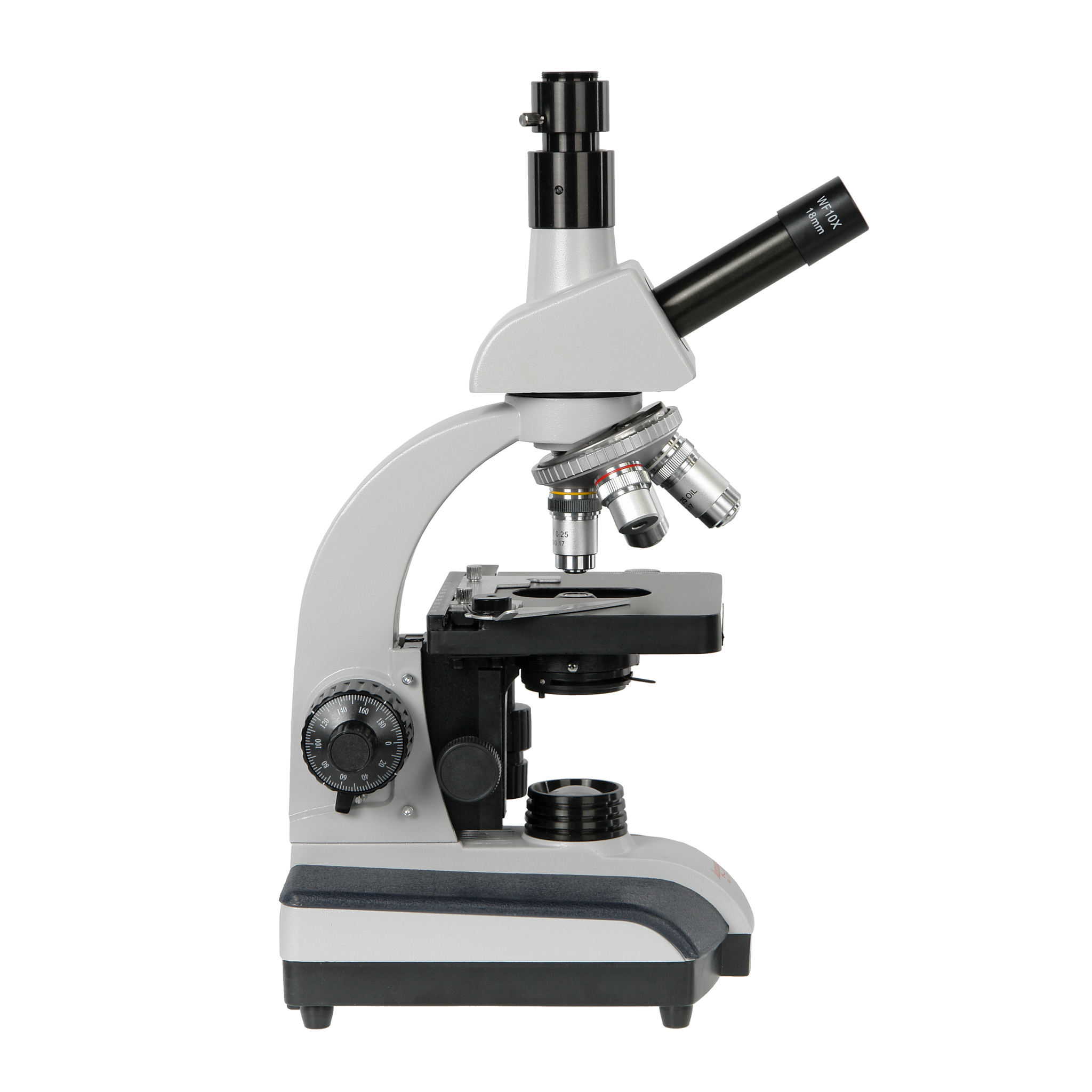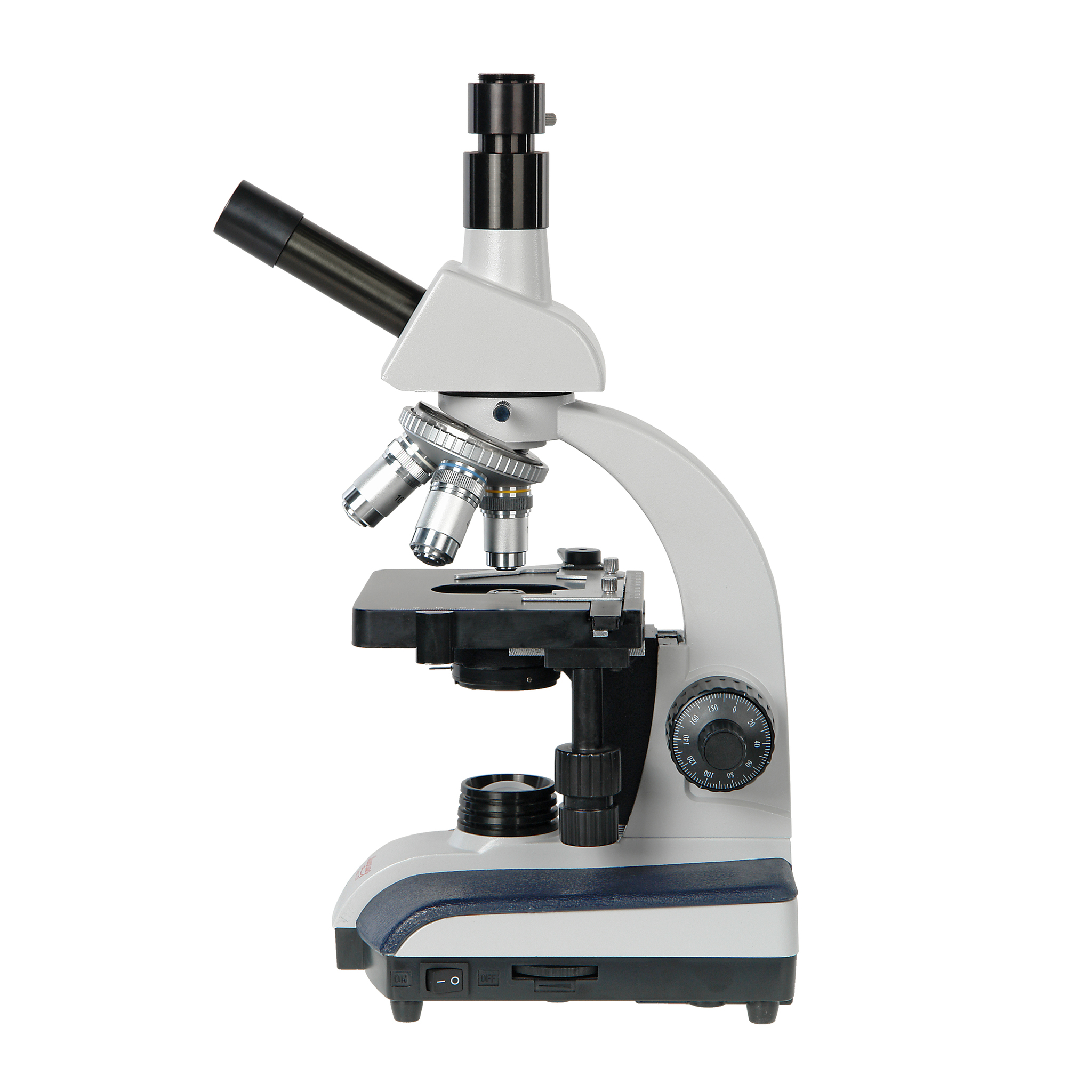 Микроскоп снабжен визуальной насадкой поворотной конструкции, что делает микроскоп удобным для учебного процесса, особенно в ситуациях, когда наблюдение проводят несколько учащихся одновременно. Окулярный тубус имеет наклон 30 градусов, что способствует комфортной работе с микроскопом и меньшей утомляемости исследователя.