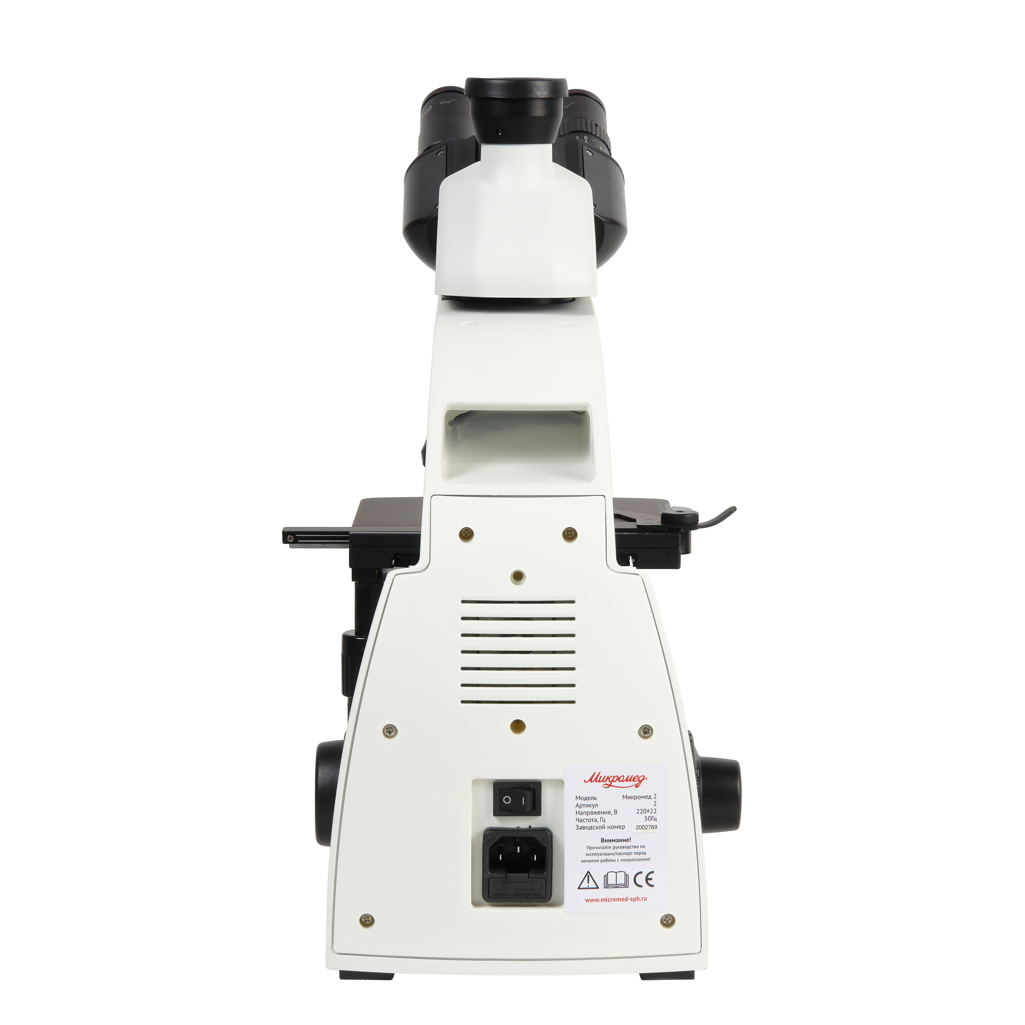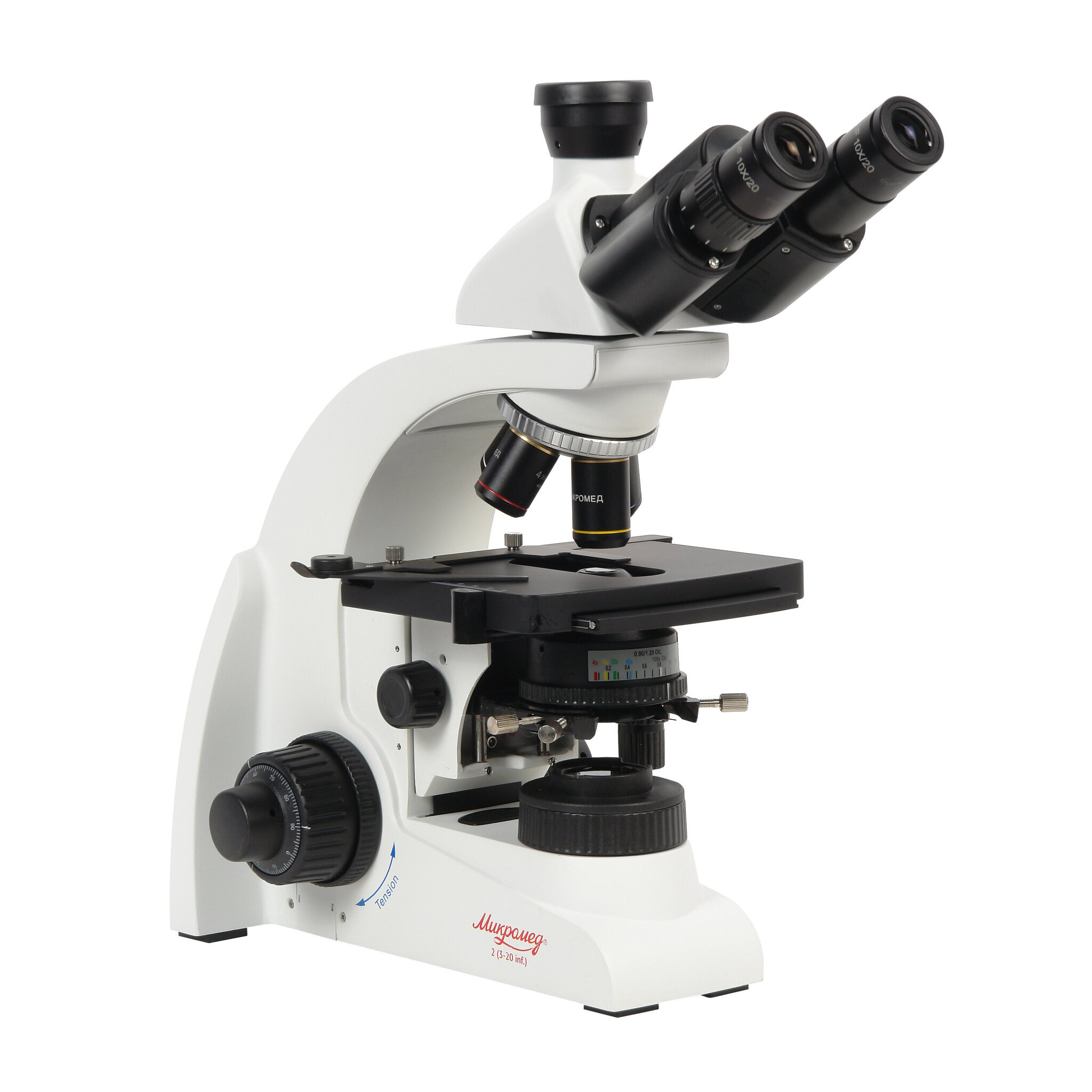 Микроскоп Микромед 2 (3-20 inf.) спроектирован на оптическую длину тубуса «бесконечность». Оптическая система микроскопа включает в себя оптическую головку с окулярными тубусами и каналом визуализации, объективы на револьверном устройстве, коллектор и конденсор осветительного устройства с апертурной и полевой диафрагмами и слотом для устройства темного поля.