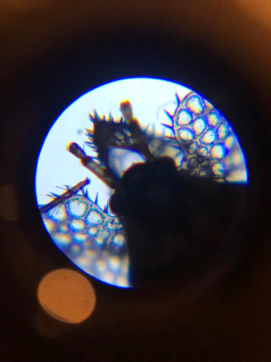 Для начала исследований образец кладется на предметный столик и фиксируется при помощи зажимов. Если внешнего освещения недостаточно, можно включить подсветку. Она расположена внизу и представляет собой светодиод, яркость которого можно регулировать. Пучок света проходит через диск с диафрагмами, который помогает более точно настраивать интенсивность освещения. Подсветка работает от батареек, поэтому при наблюдениях нет нужды находиться рядом с розеткой. Это позволяет использовать микроскоп вдали от цивилизации, что значительно расширяет области его применения.
