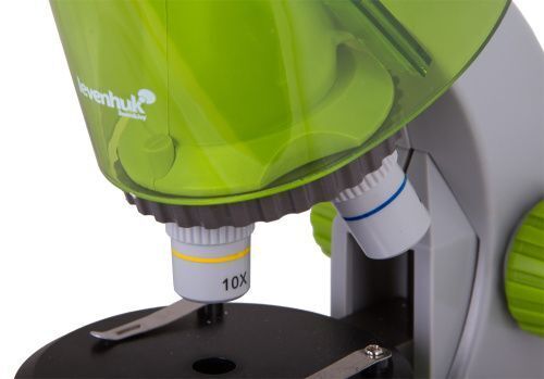Микроскоп Levenhuk LabZZ M101 Lime\Лайм создан для детей, но по уровню оптики он ориентируется на «взрослые» модели. Эта модель снабжена тремя объективами, менять которые очень просто – достаточно повернуть револьверное устройство. Выдвижной окуляр имеет два положения – в одном он дает увеличение 10 крат, а в другом – 16 крат. Такой окуляр и три объектива позволяют получить целых шесть степеней увеличения: 40, 64 ,100, 160, 400 и 640 крат.