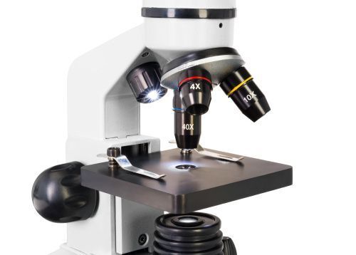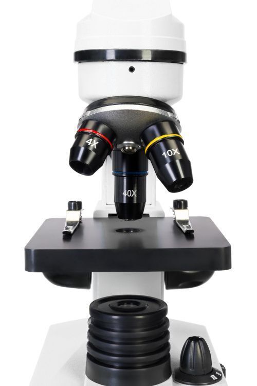 Оптические элементы микроскопа изготовлены из качественного стекла высокой прозрачности. Для лучшего светопропускания на линзы нанесено многослойное просветляющее покрытие – благодаря ему изображение получается четким, резким и контрастным. Микроскоп снабжен тремя объективами, с помощью которых можно получить увеличение от 40 до 400 крат. Чтобы поменять кратность, достаточно просто повернуть револьверное устройство.