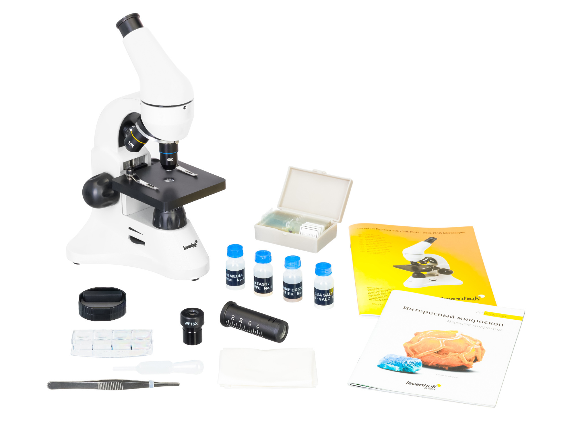 В комплект входит набор Levenhuk K50, с помощью которого начинающий исследователь микромира сможет провести множество интересных опытов. Начать стоит с изучения готовых образцов, а затем можно приступить к созданию собственных препаратов. В руководстве есть вся необходимая информация об устройстве микроскопа и принципах работы с ним, советы по изготовлению микропрепаратов и описания экспериментов.