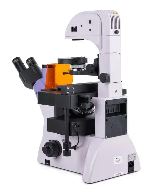 - Штатив со встроенным источником электропитания, осветителем отраженного света видимой люминесценции, источником проходящего света , механизмом фокусировки, предметным столиком, кронштейном конденсора, револьвером объективов и каналом визуализации