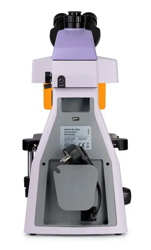 Помимо перечисленных особенностей конструкции, влияющих на комфорт пользователя, в дизайне микроскопа предусмотрели возможность спрятать от глаз пользователя провода: рабочее место становится более опрятным и безопасным. На корпусе прибора размещена надежная ручка для переноски. Микроскоп удобно хранить, использовать и перемещать.