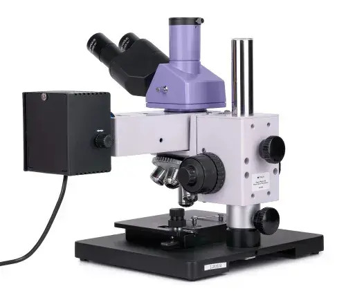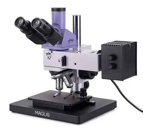 MAGUS Metal 630 – металлографический микроскоп на штативе оригинальной конструкции. С его помощью можно исследовать микроструктуру непрозрачных образцов – металлов, сплавов, полупроводниковых материалов – любой высоты и геометрии. Освещение рабочей области осуществляется галогенной лампой (отраженный свет), наблюдения ведутся в светлом поле и в поляризованном свете. Микроскоп имеет небольшие размеры и без труда помещается в малогабаритную мебель, может использоваться в ограниченном пространстве. Прибор востребован на предприятиях промышленности, в лабораториях контроля качества, в высших учебных заведениях.