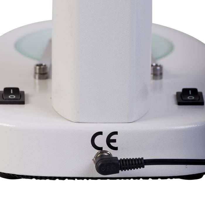 Осветители проходящего и отраженного света создают освещение, близкое по спектру к дневному свету, что способствует правильной цветопередаче и упрощает настройку баланса белого. Оба осветителя питаются от сетевого адаптера, входящего в комплект микроскопа.