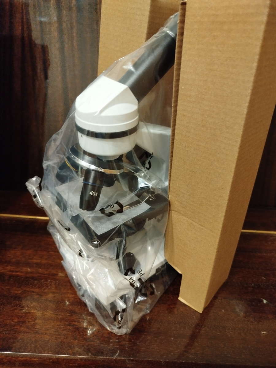 В комплектацию микроскопа воходят три объектива (4х, 10x, 40х), два окуляра (10x и 20х), а также линза Барлоу 2х. Линза Барлоу устанавливается в окулярный тубус и используется, для удвоения увеличения микроскопа (увеличение определяется произведением увеличений объектива и окуляра).