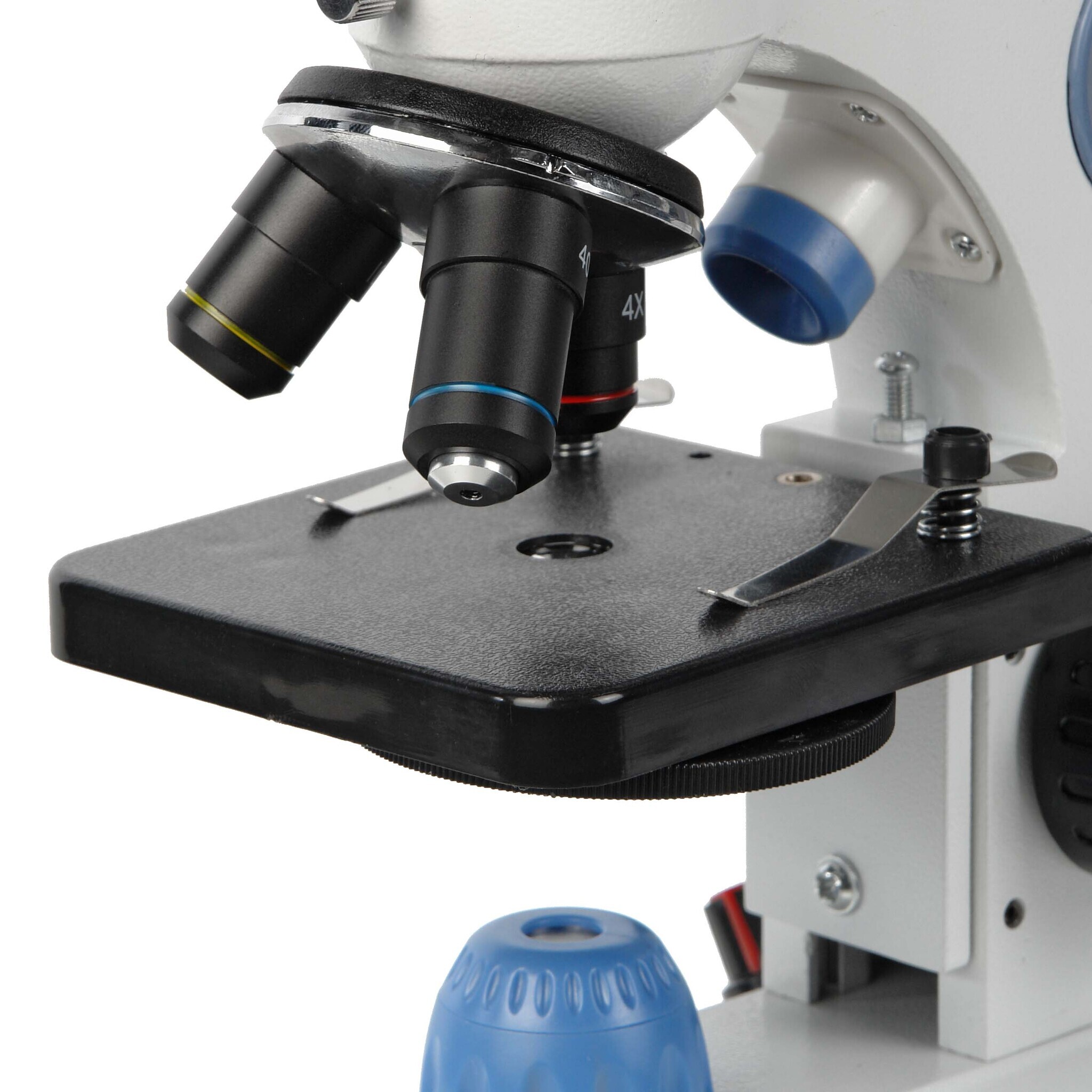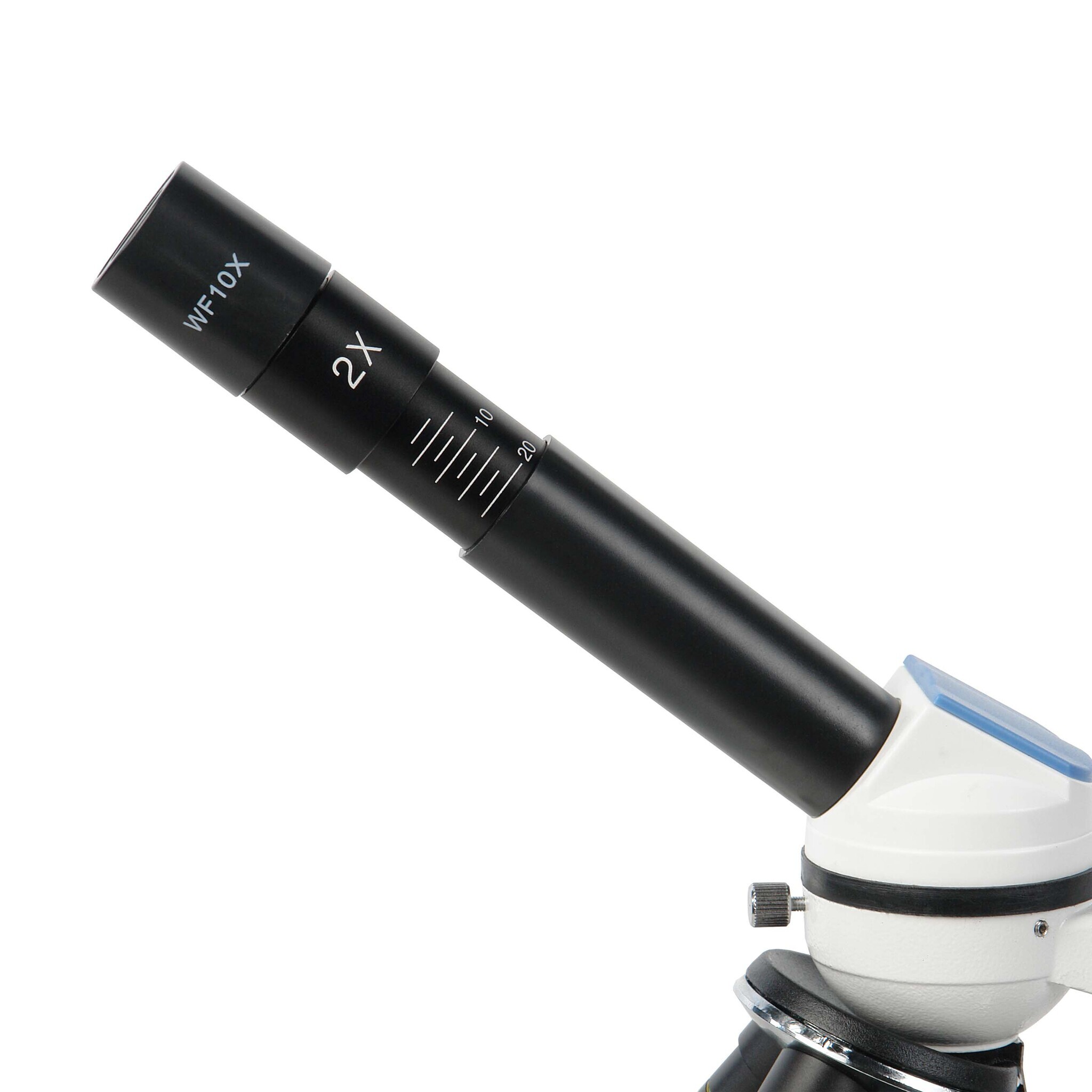 В комплект поставки микроскопа входят окуляры широкого поля WF10х/15 и 16х/11. При использовании окуляра 10х и объектива 40х увеличение микроскопа составляет 400х. С окуляром 16х увеличение составит 640х.