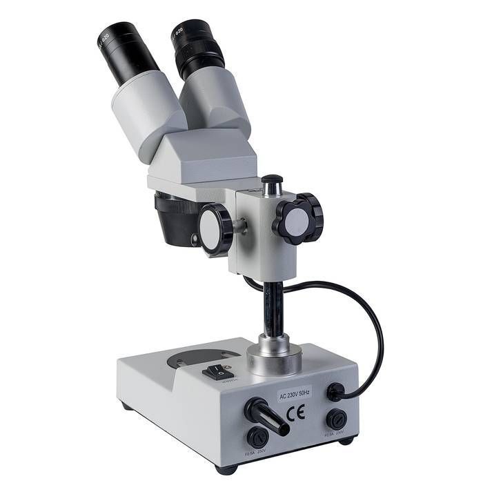 - Микроскоп имеет два фиксированных увеличения 20х/40х.