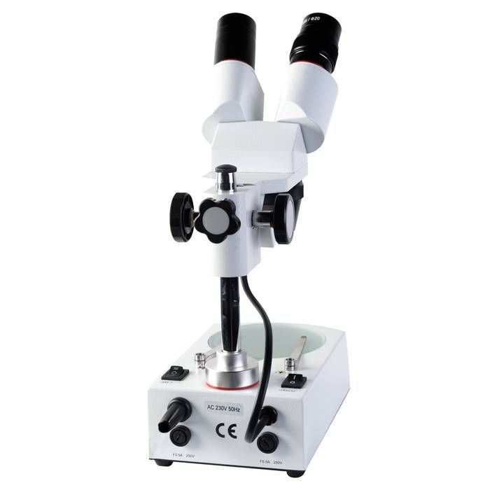 Стереомикроскоп предназначен для проведения исследований в отраженном и проходящем свете. Для подсветки предмета предназначены встроенные в его конструкцию осветители с низковольтными галогенными лампами. Осветитель отраженного света встроен в штатив и имеет линзовый коллектор в оправе, что позволяет получать яркой равномерное пятно в плоскости предмета. Осветитель проходящего света для обеспечения равномерности освещения снабжен матовым рассеивателем и встроен в основание. Блок питания осветителей расположен в основании микроскопа. При необходимости использовать дополнительный осветитель отраженного света, его можно выбрать из ассортимента дополнительных принадлежностей.