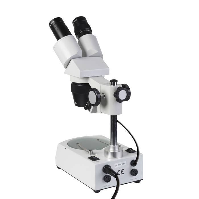 - Микроскоп имеет два фиксированных увеличения 20х/40х.