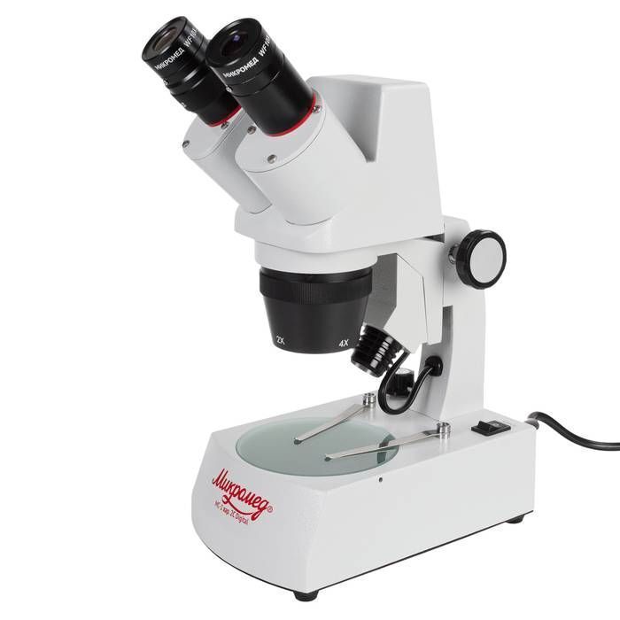 - Микроскоп имеет два фиксированных увеличения 20х и 40х.