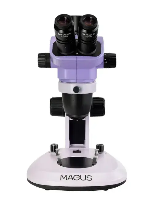 MAGUS Stereo 7T – это стереомикроскоп по схеме Грену с двумя полностью автономными оптическими каналами. Микроскоп дает увеличение в 6,7–45 крат, производит объемное изображение (угол стереоскопичности равен 15 градусам) и имеет рабочую область 105 мм в базовой комплектации (максимально можно повысить до 177 мм при установке опциональных аксессуаров). Работает с прозрачными и непрозрачными объектами, а при установке дополнительных компонентов становятся доступны и другие методы исследования: по темному полю или в поляризованном свете. Прямое изображение объекта, которое производит микроскоп, удобно для манипуляций с образцом. Модель MAGUS Stereo 7T предполагает установку цифровой камеры.