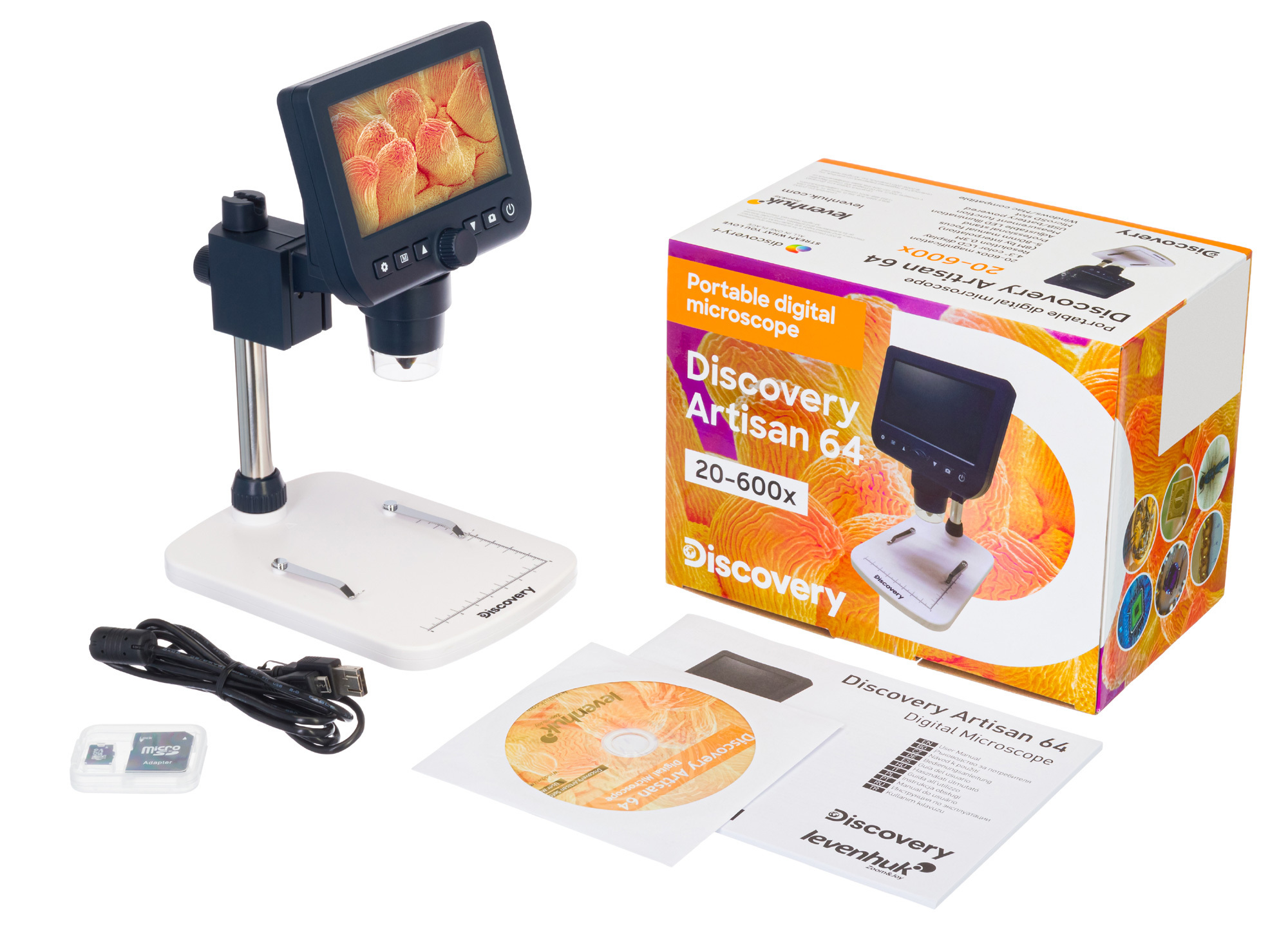 У микроскопа Levenhuk Discovery Artisan 64 есть встроенный ЖК-экран, на котором в режиме реального времени можно наблюдать картинку с объектива. Прибор можно с успехом использовать для изучения металлов, заточки ножей, реставрации предметов искусства, работы с монетами и минералами, ремонта микроэлектроники и часов, оценки ювелирных изделий и многого другого. Также этот микроскоп подойдет для создания цифровых альбомов и каталогов, так как его программное обеспечение позволяет фотографировать и записывать видео. А возможность проводить линейные и угловые измерения пригодится в профессиональной деятельности многих специалистов.