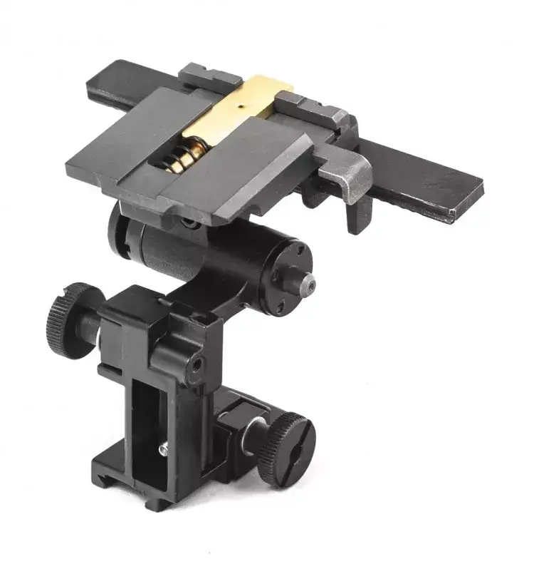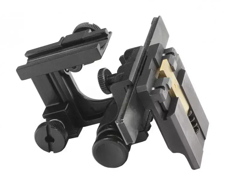 - Крепление двух типов. Первое — для шлема / оголовья, посредством адаптера SHROUD, для использования в качестве очков ночного видения. Второе — для установки на оружие с планкой Вивер и совместного использования с коллиматорным прицелом.