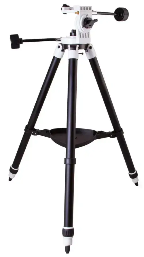 В комплекте с монтировкой вы получаете алюминиевую треногу. Высоту ножек треноги можно регулировать, а на одной из опор есть пузырьковый уровень. Для удобного хранения аксессуаров во время наблюдений на треногу можно установить специальный лоток (в комплекте).