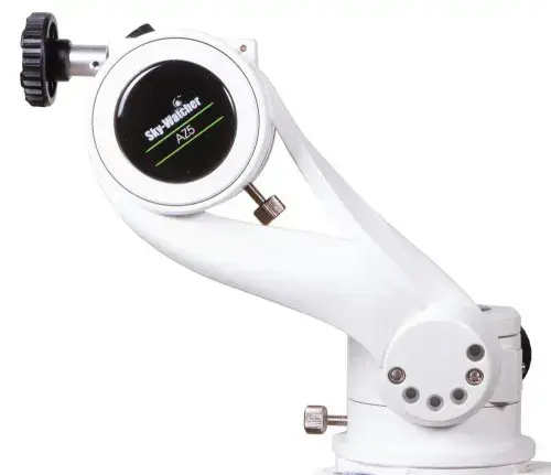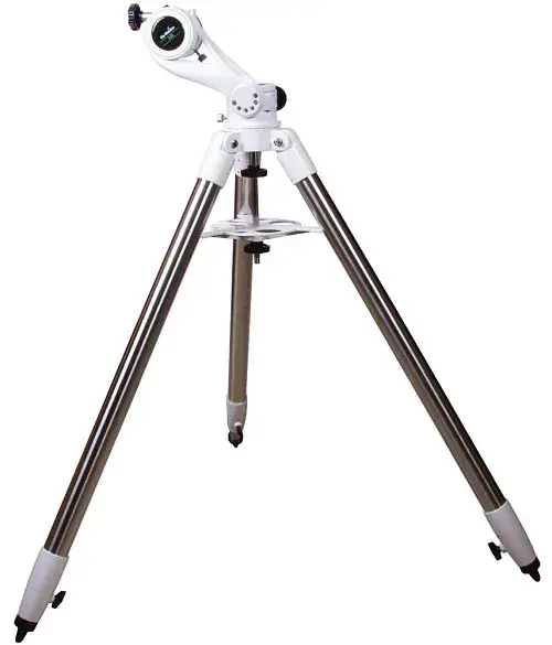 Монтировка Sky-Watcher AZ5 со стальной треногой ориентирована на широкий круг пользователей. Простота управления понравится начинающим астрономам. Профессионалы же оценят возможность изменения наклона полувилки на 45° и точное наведение при помощи винтов на основе червячных пар. Монтировка прекрасно подойдет для установки короткофокусных телескопов с диаметром объектива до 200 мм.