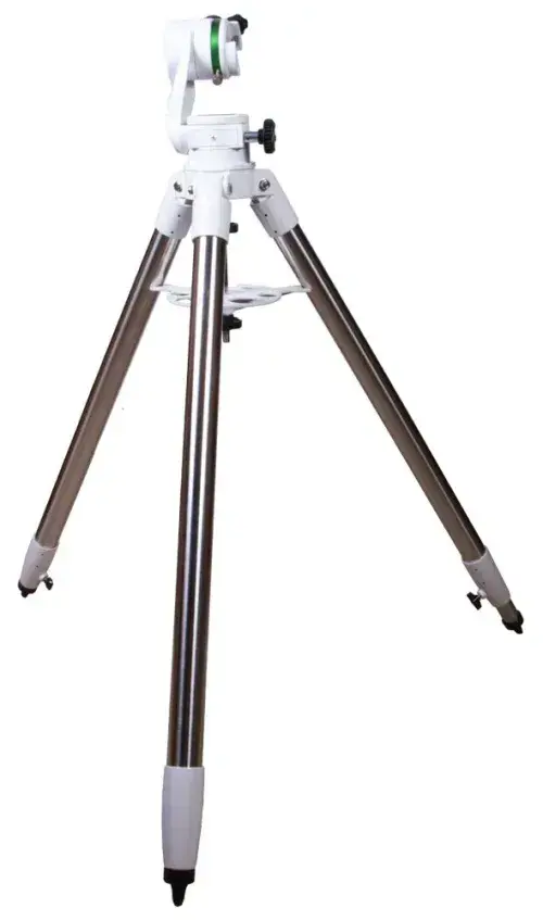 Монтировка комплектуется устойчивой стальной треногой и лотком для аксессуаров. Высоту ножек треноги можно регулировать.