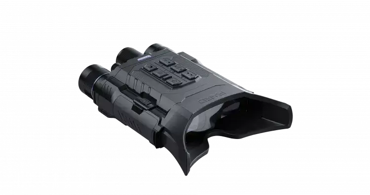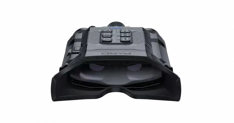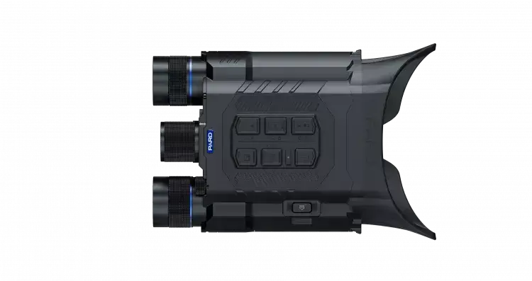 Прибор настраивается под особенности зрения пользователя как оптический бинокль: доступна фокусировка объектива (кольцом на объективе), диоптрийная подстройка (барабанчик над объективом) и регулировка межзрачкового расстояния (колесико под окуляром). Мягкий сдвоенный наглазник блокирует боковую засветку и обеспечивает комфортный просмотр. Управление удобно как левше, так и правше. Большие софт-тач кнопки с индивидуальным «рисунком» чётко различаются на ощупь кончиком указательного пальца и легко нажимаются даже в перчатках.