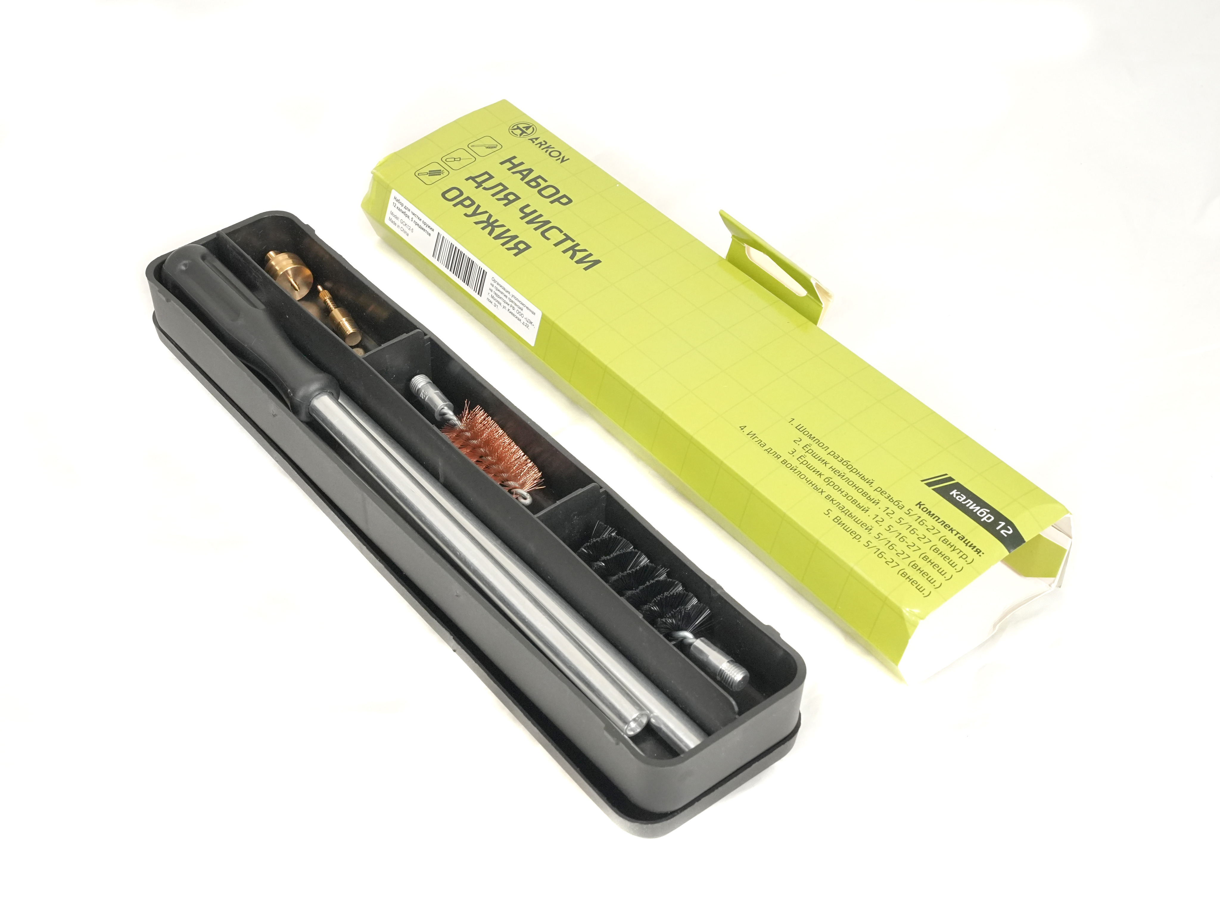 Набор ARKON подходит для регулярного обслуживания охотничьего и спортивного оружия. Оптимальное сочетание металлических и нейлоновых аксессуаров обеспечивает глубокую чистку без повреждения канала ствола.
